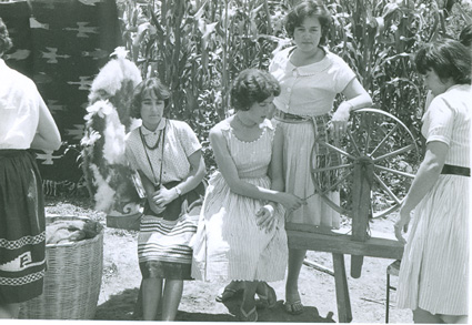 1960Una mujer de la región trabajando con una rueca e hilando.