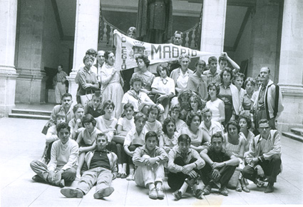 1961Foto de grupo. Aparecen dos banderines del Colegio.