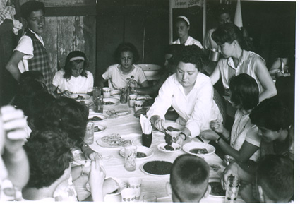 1962Grupo de alumnas dispuestas en mesa para comer.