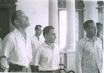 1962El maestro Eduardo Gorraéz junto con otras personas de pie escuchando.