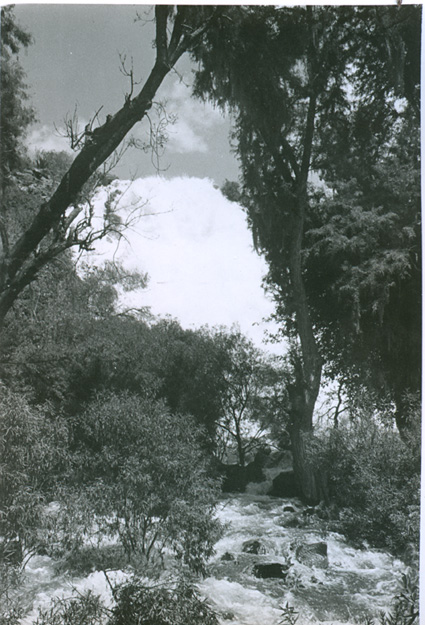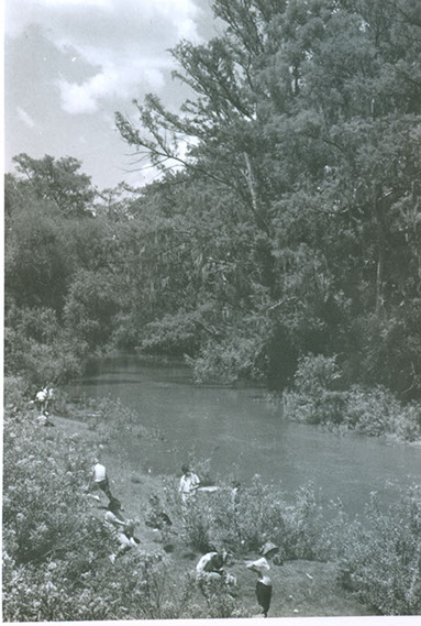 NO IDENTIFICADOVista de un río en un bosque, a la orilla hay varios chicos.