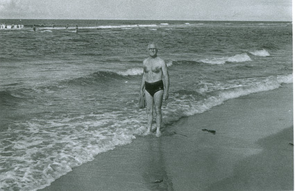 1961El maestro Eduardo Gorraéz junto con otra persona a la orlla del mar.