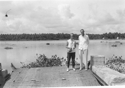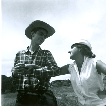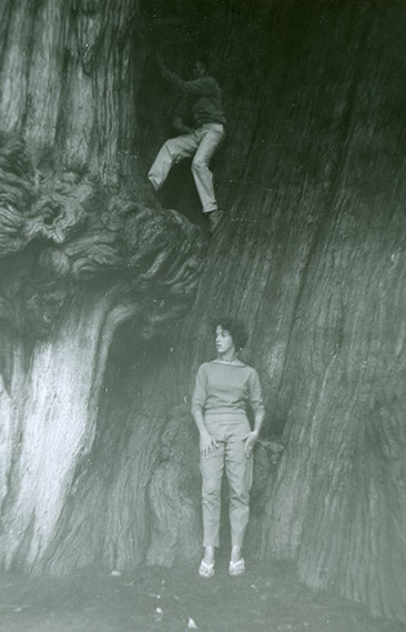 1961El maestro Eduardo Gorraéz junto con una chica parados, de fondo se observa un lago.
