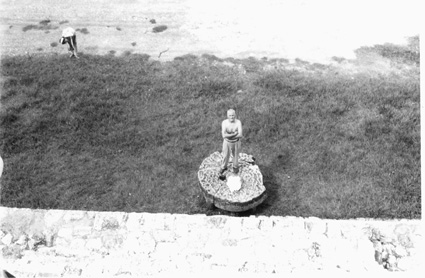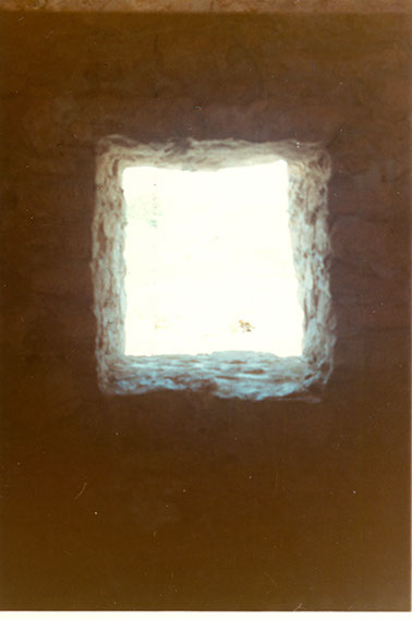 1971Vista de un agujero o ventana de una construcción de piedra.
