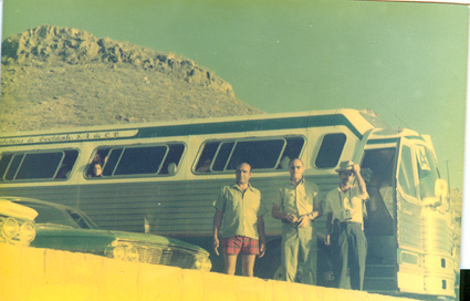 NO IDENTIFICADOTres personas afuera de un autobus de turismo.