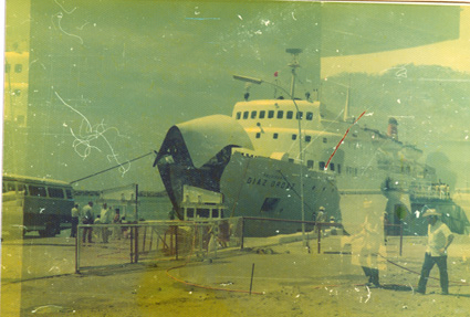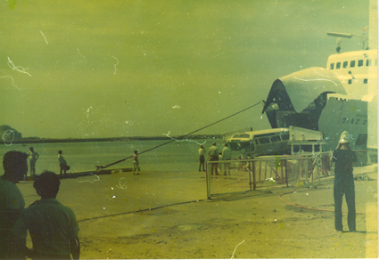 NO IDENTIFICADOVista de un barco con la compuerta de carga abierta, posiblemente sea un ferry.