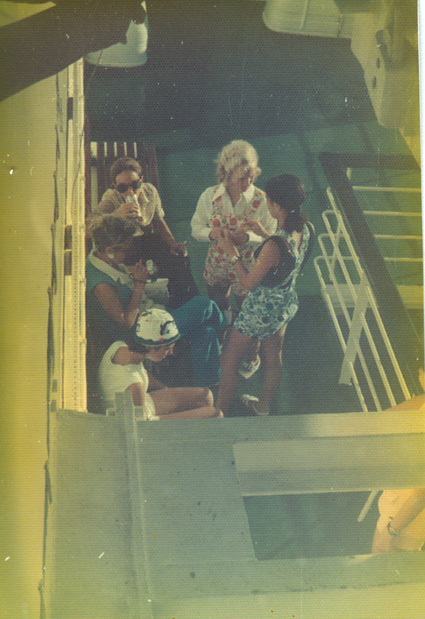 NO IDENTIFICADOChicas sentadas en las escaleras de un barco.