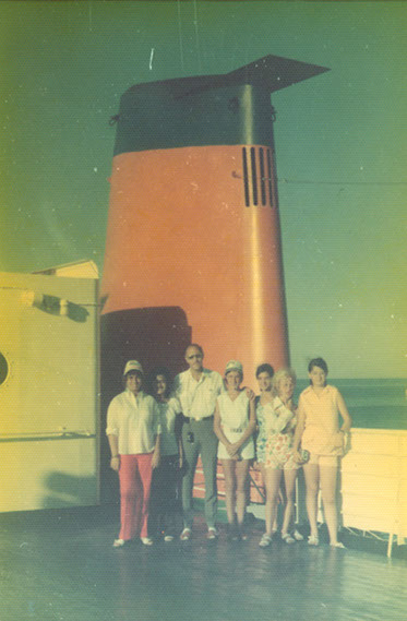 NO IDENTIFICADOGrupo de chicas debajo de una chimenea de un barco.