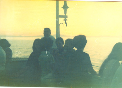 NO IDENTIFICADOGrupo de chicos sentados en una embarcación, de fondo se ve el atardecer.