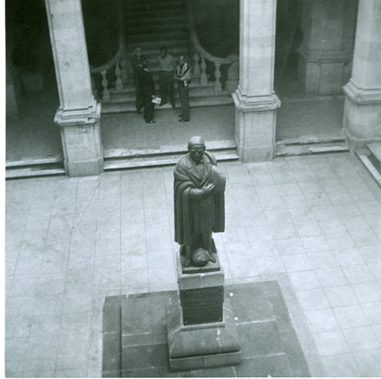 NO IDENTIFICADOPatio interior de una construción, se ve una escultura, puede que sea Morelos.