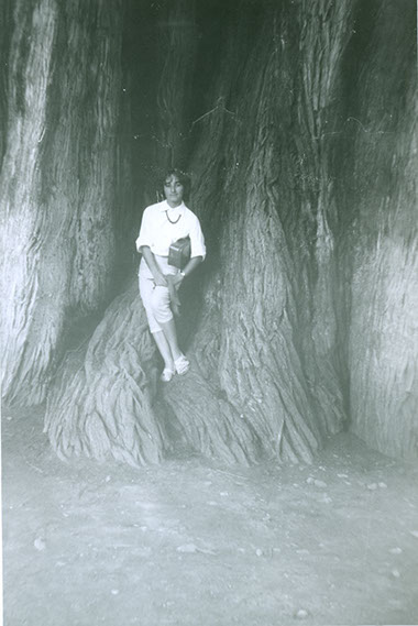NO IDENTIFICADOUna chica subida y recargada en el tronco de un árbol.