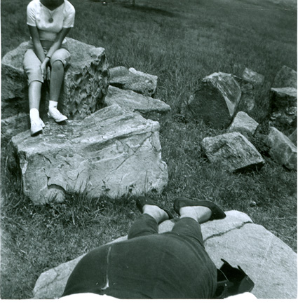 NO IDENTIFICADOUn chico y una chica acomodados en un par de piedras grandes.