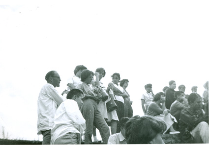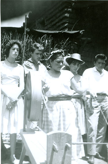1960Grupo de alumnos observando a una persona haciendo alfarería.