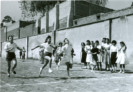 NO IDENTIFICADOTres niñas corriendo, llegando a la meta.