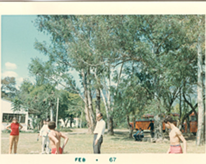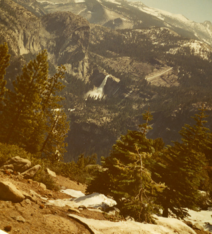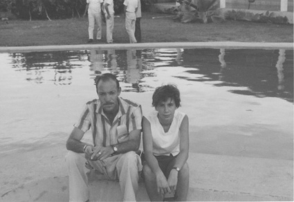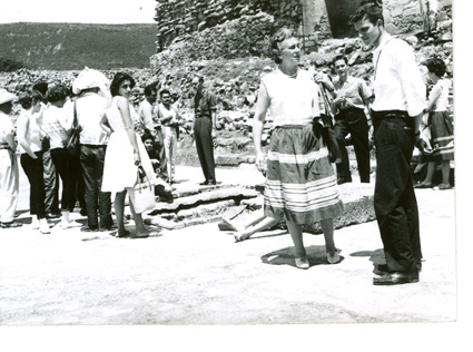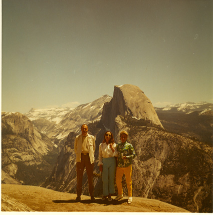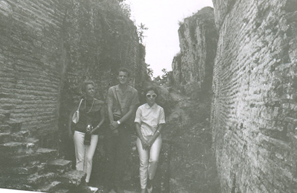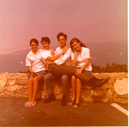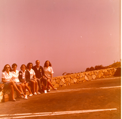 1970El maestro Eduardo Gorraéz junto con dos chicas, al fondo vista de montañas