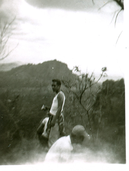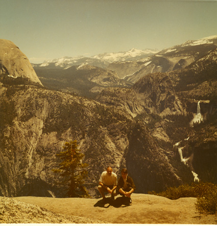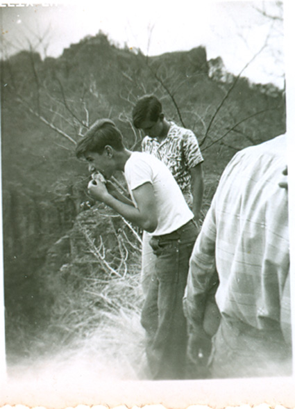 1970El maestro Eduardo Gorráez junto con otro chico, al fondo vista de montañas.