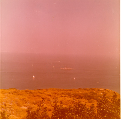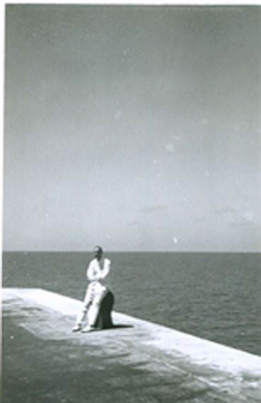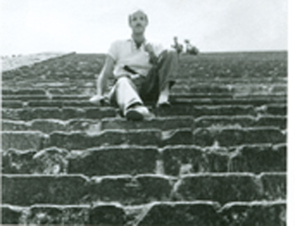 NO IDENTIFICADOEl maestro Eduardo Gorraéz apoyado en un cono de piedra, de fondo se observa el mar.