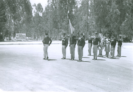NO IDENTIFICADOEscolta con bandera. Detrás chicos rindiendo honores.