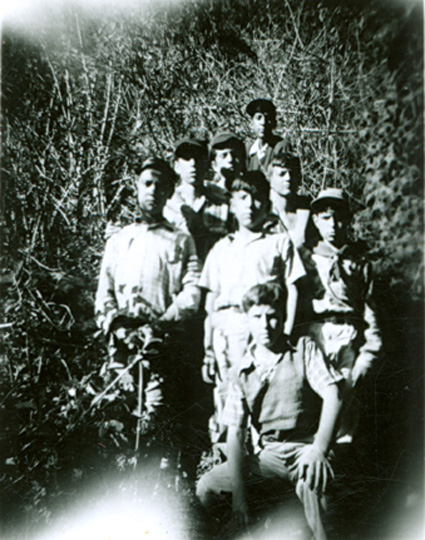 NO IDENTIFICADOGrupo de chicos observando algo en un bosque.