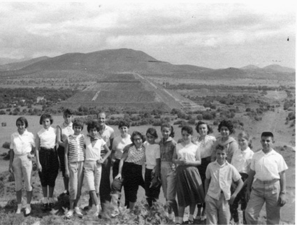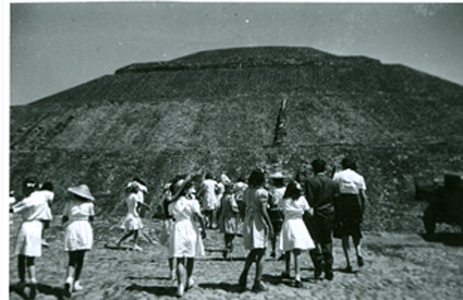 NO IDENTIFICADOGrupo de alumnos parados delante de una pirámide prehispánica.