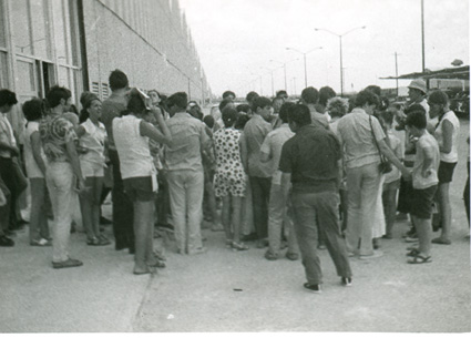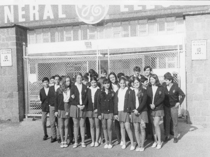 NO IDENTIFICADOGrupo de alumnos uniformados fuera de una planta de General Electric.