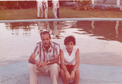 NO IDENTIFICADOEl maestro Eduardo Gorraéz junto con una chica sentada en el borde de una fuente.