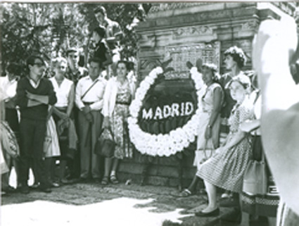 NO IDENTIFICADOHaciendo honores a un monumento, hay un adorno floral con la palabra Madrid formada.