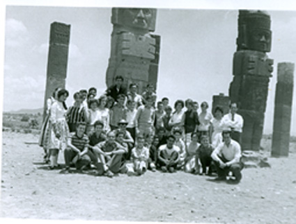 NO IDENTIFICADOGrupo de alumnos junto a ídolos prehispánicos.