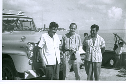NO IDENTIFICADOEl maestro Eduardo Gorraéz junto con dos personas más, detrás se observa el mar.