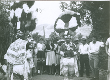 NO IDENTIFICADOVista de dos danzantes prehispánicos, gente de fondo observando.