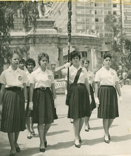 1961Homenaje a Benito Juárez, Ceremonia Cívica. Escoltas femenil que lleva la bandera. Hemiciclo a Benito Juárez.