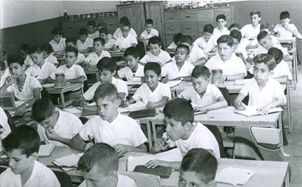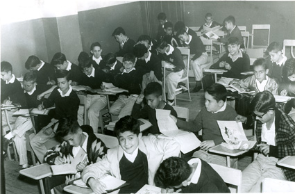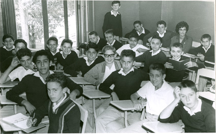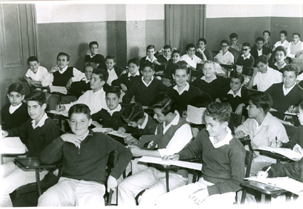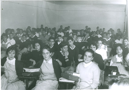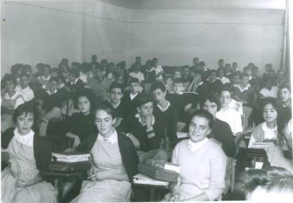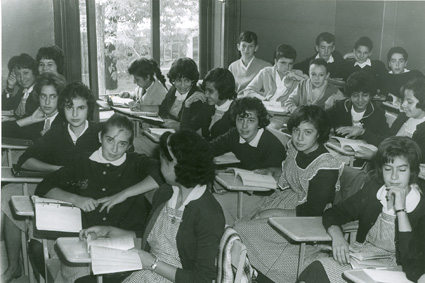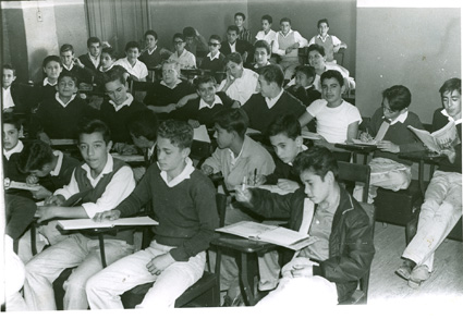 1960Alumnos del primer grado de secundaria , sentados en sus pupitres.