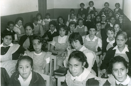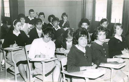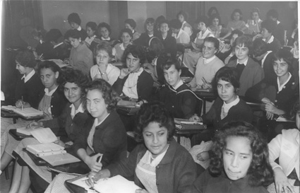196?Grupo de jóvenes mujeres sentadas en sus pupitres