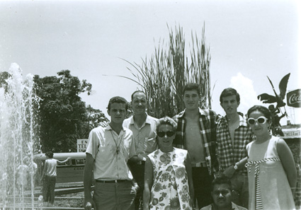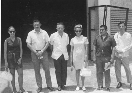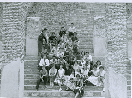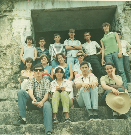 1967Grupo de alumnos y maestra en las escaleras de entrada a ruinas arqueológicas. Se encuentran Alejandro Pérez Pascual, Santiago Capella.