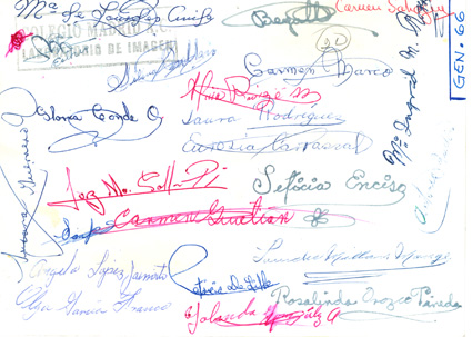 196?Firmas de las alumnas en la parte posterior de la fotografía.