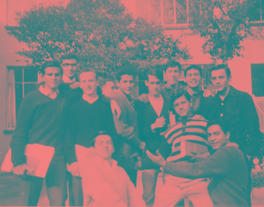1966Grupo de alumnos de bachillerato en el patio del colegio.