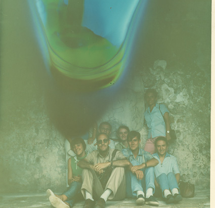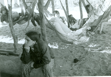 196?Grupo mixto de alumnos en hamacas en la sombra, aparentemente en Isla Mujeres.