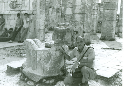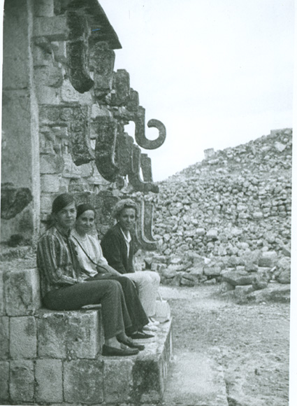 196?Eduardo Gorráez sentado en una construcción. Sitio arqueológico en Yucatán.