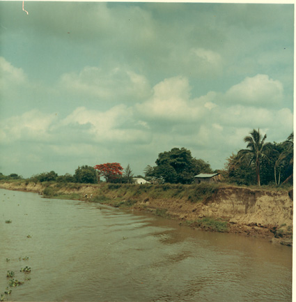 1967Paisaje, orilla de un río (?) se ven palmeras. El borde del acantilado.