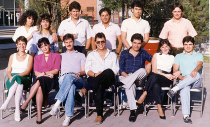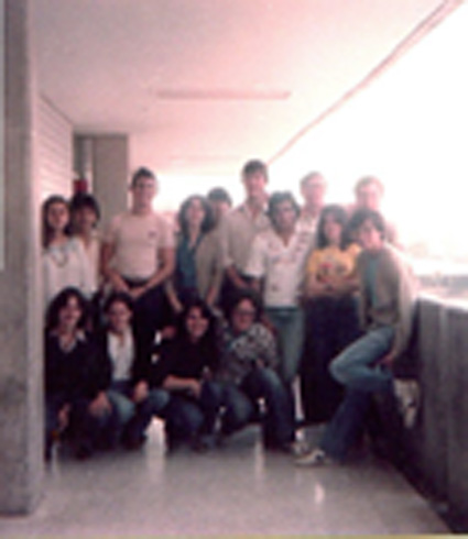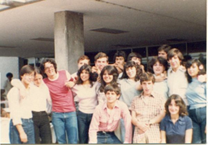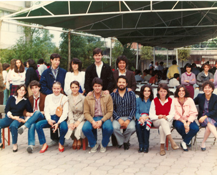 198?Foto de grupo de exalumnos fuera de la unidad cultural Lázaro Cárdenas.