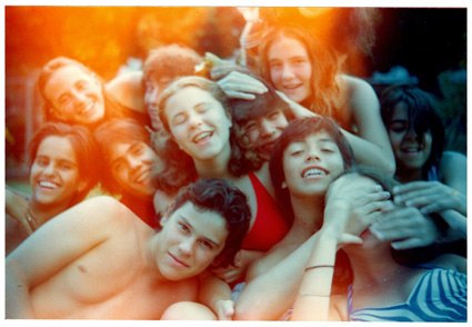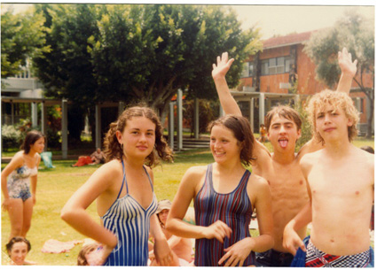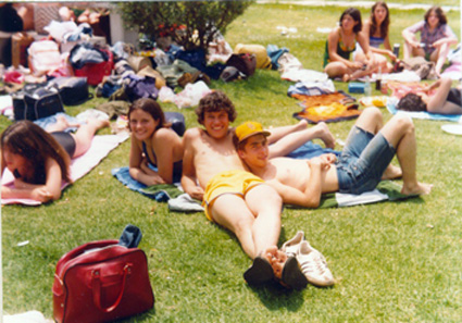 198?Alumnnos en traje de baño acostados en el pasto de lo que parecen ser las instalaciones del Centro Asturiano de México.