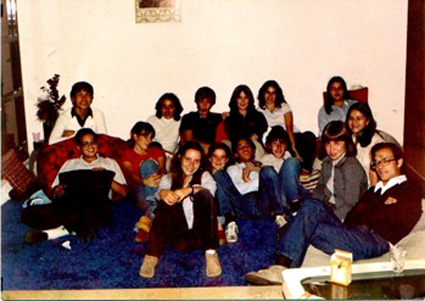 198?Grupo de jóvenes sentados en la sala de una casa particular.