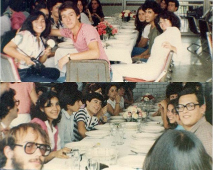 198?Comida de alumnos o exalumnos en las INSTALACIONES del colegio. La imagen esta dividida en dos.