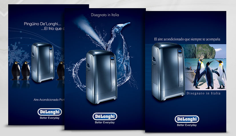 Material promocional para aire acondicionado Pingüino De'Longhi.